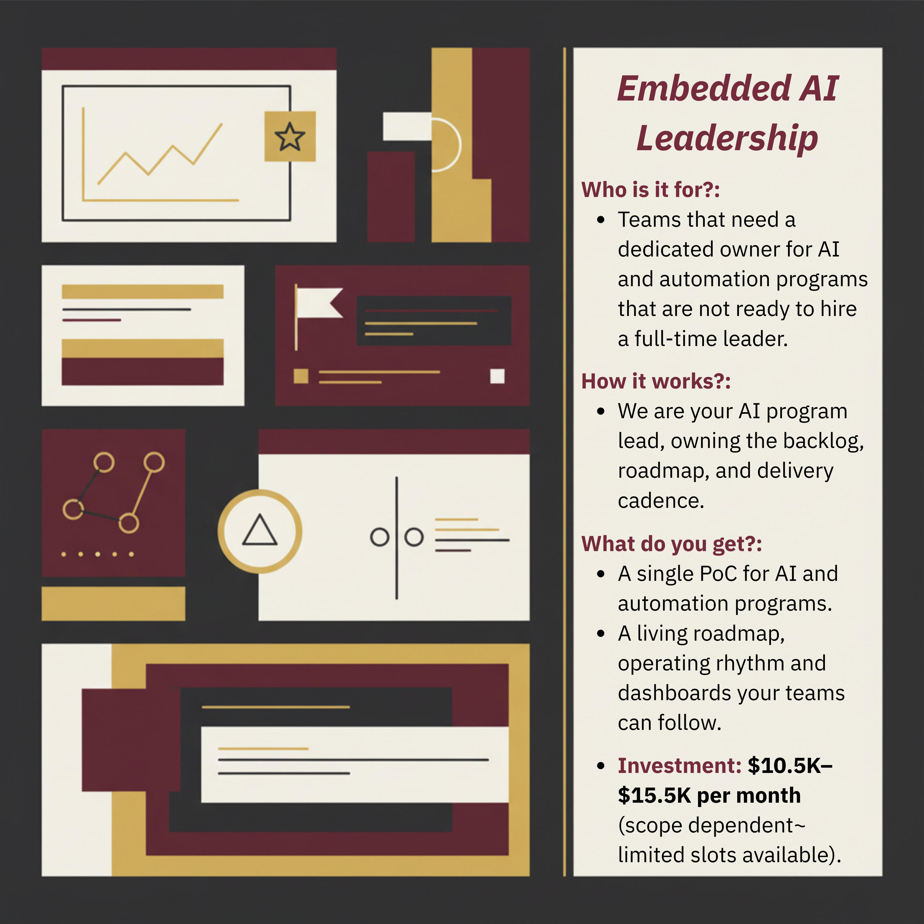 Own your AI backlog and roadmaps remotely. Get workflows that stick + dashboards that prove impact.